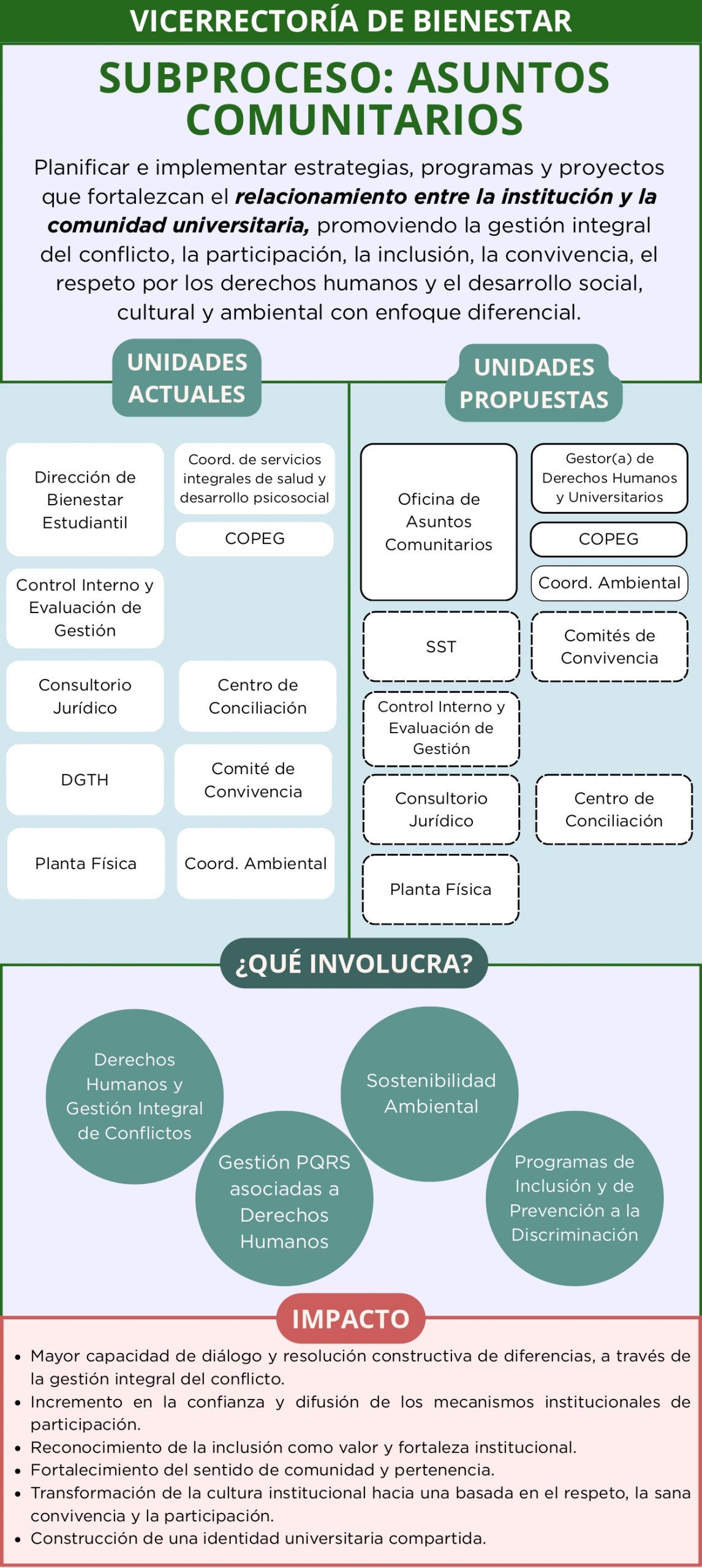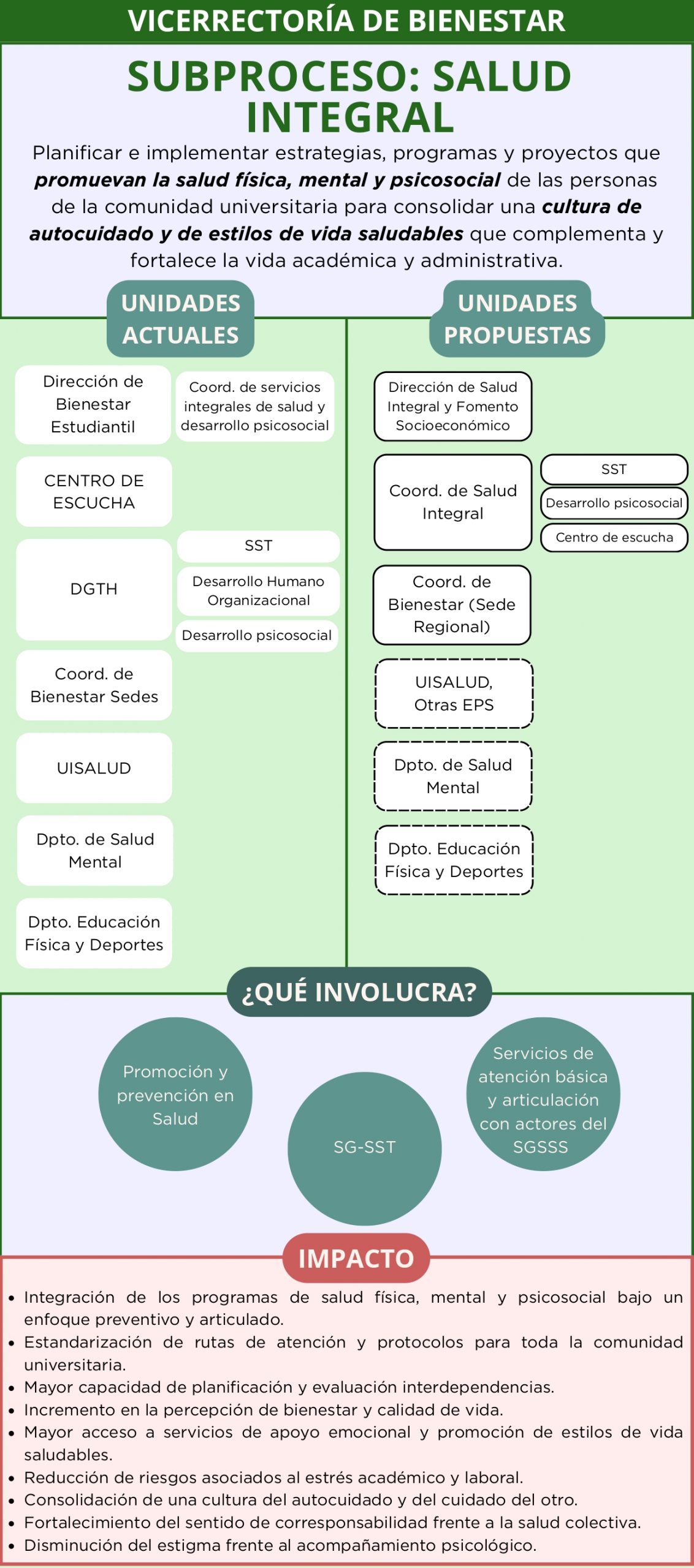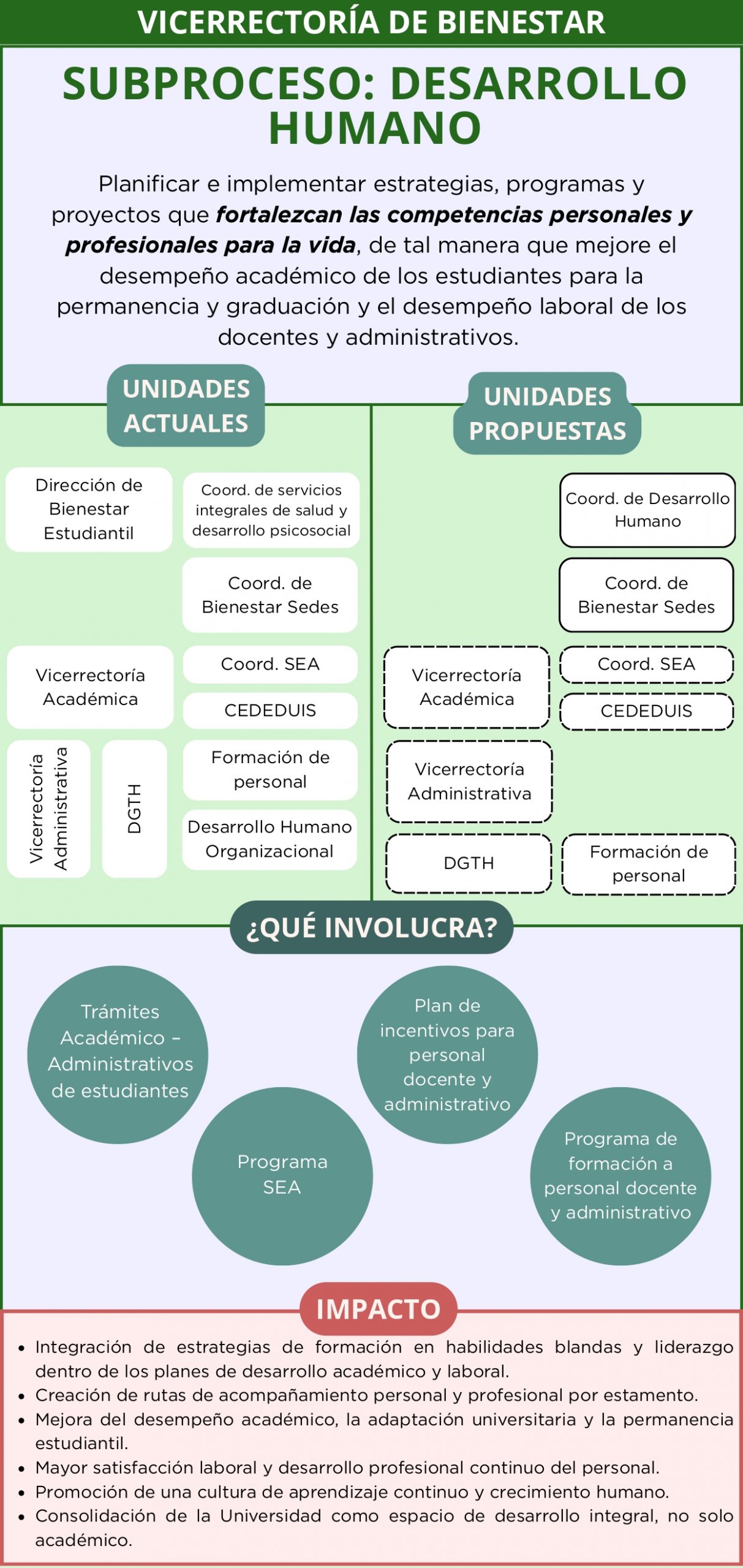 Esta iniciativa busca consolidar una estructura orgánica que articule de manera estratégica las políticas, programas y acciones orientadas al desarrollo integral y bienestar de los distintos estamentos universitarios, con un enfoque preventivo, participativo e incluyente.